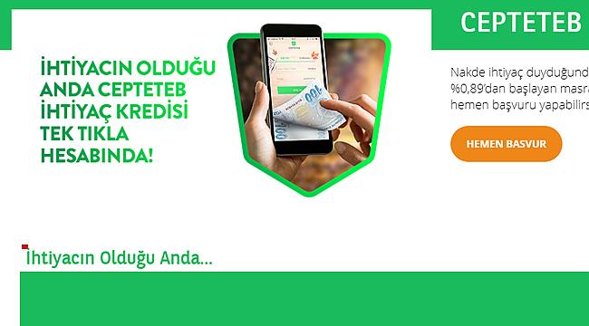 - Hali hazırda TEB veya CEPTETEB müşterisiysen, seni ziyaret etmemize gerek kalmadan CEPTETEB İhtiyaç Kredisi'ne İnternet Şubesi'nden hemen başvurabilirsin. Kredi başvurun onaylandığında şubeye gitmeye gerek kalmadan istediğin an istediğin yerden kredini kullanabilirsin. Bunun için CEPTETEB İnternet / CEPTETEB İnternet Şube'ye ya da Mobil Uygulamaya giriş yapman ve kredilerden CEPTETEB İhtiyaç Kredisi'ni seçmen yeterli.