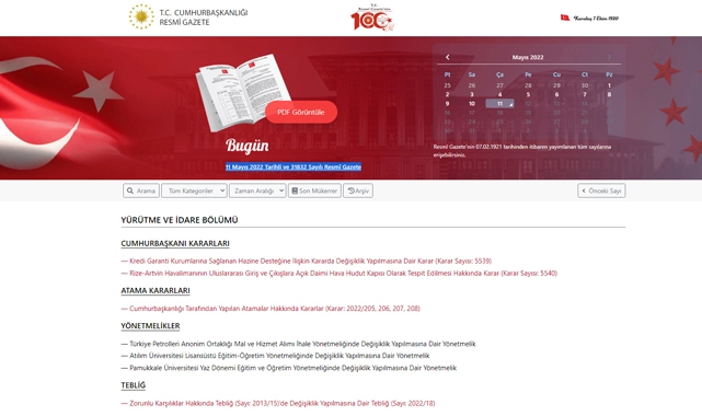 Hafta ortasına girilirken, 11 Mayıs 2022 Tarihli ve 31832 Sayılı Resmî Gazete bu sabah yayımlanarak resmen yürürlüğe girdi. Peki bu sabah hangi önemli kararlar Resmi Gazete'de ilan edildi?
