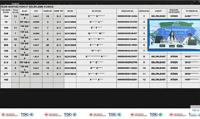 Iğdır Merkez TOKİ konut belirleme kura çekilişi sonuçları isim listesini YouTube kanalı canlı yayın videosundan izleyebilirsiniz.