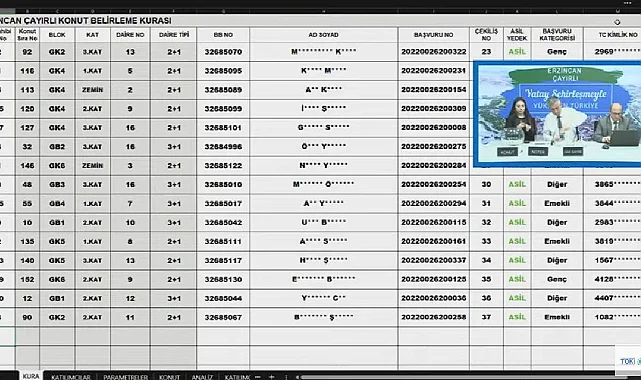 Erzincan Çayırlı TOKİ konut belirleme kura çekilişi sonuçları isim listesini YouTube kanalı canlı yayın videosundan izleyebilirsiniz.
