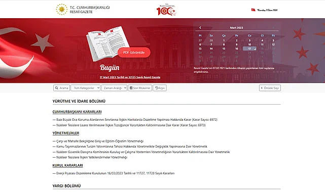 17 Mart 2023 sabahında yayımlanarak yürürlüğe giren Resmi Gazete kararları.