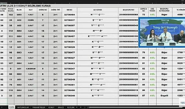 Toplu Konut İdaresi Başkanlığı (TOKİ) tarafından Türkiye genelinde hayata geçirilen sosyal konut projelerin teslimleri sürüyor. Bu kapsamda Bartın Ulus TOKİ konut projesinde yer alan evlerin hak sahipleri Noter huzurunda çekilen kura sonuçları açıklandı.