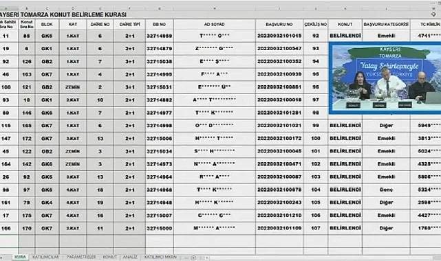 178 dairenin yer aldığı Kayseri Tomarza TOKİ projesinde kura heyecanı bugün yaşandı. TOKİ tarafından Kayseri Tomarza'da hayata geçirilen 178 adet dairenin hak sahipliği konut belirleme kura çekilişi yapılarak tamamlandı.