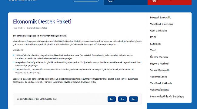 "Yapı Kredi, 'Ekonomik destek paketi ile müşterilerimizin yanındayız.' dedi