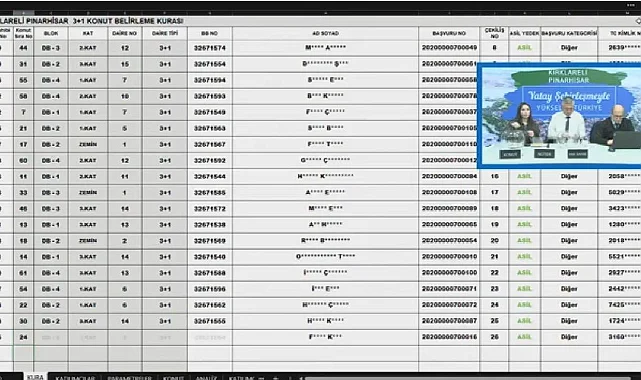TOKİ KIRKLARELİ PINARHİSAR KURA ÇEKİLİŞİ SONUÇLARI CANLI YAYINI