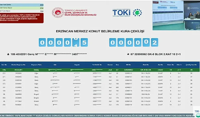 Erzincan Merkez TOKİ konut belirleme kura çekilişi sonuçları isim listesini YouTube kanalı canlı yayın videosundan izleyebilirsiniz.