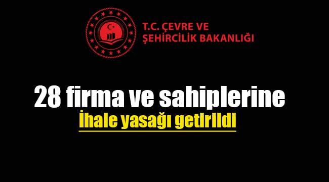 Çevre ve Şehircilik Bakanlığı tarafından ihalelere girme yasağı verilen şirketlere yenileri eklenmeye devam ediyor. Bakanlık tarafından çok sayıda şirkete uygulanan ihalelere katılma yasaklarına bu sabah 28 firma daha eklendi.