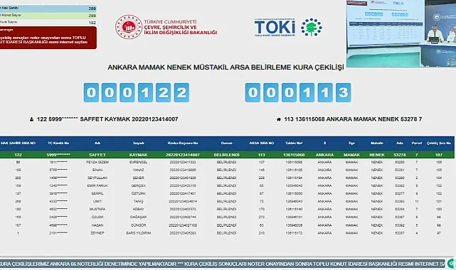Diğer taraftan idare bugün Ankara Pursaklar, Aksaray Eskil, Kahramanmaraş Göksun, Eskişehir Odunpazarı müstakil arsalar için kura işlemlerini tamamladı. Gün boyu işlemler Noter huzurunda canlı yayında devam ediyor.