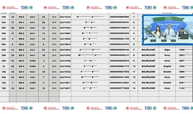 Bursa Kestel TOKİ 2+1 kura sonuçları isim listesi, Bursa Kestel TOKİ 3+1 kura sonuçları isim listesi açıklandı.