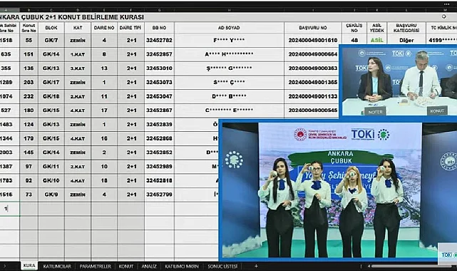 Toplu Konut İdaresi Başkanlığı (TOKİ) sosyal konut projeleri üretimini sürdürürken, yeni projelerin hak sahiplerinin belirlenmesi amacıyla kura işlemleri sürdürüyor. İdare, Ankara Çubuk'ta hayata geçirilen 305 dairelik dev toplu konut projesinde hak sahipliği konut belirleme kura heyecanı yaşandı. Ankara Çubuk TOKİ projesinde hak sahiplerinin evleri canlı yayınlanan kura işlemi Noter huzurunda isimlerin belirlenmesiyle son buldu.