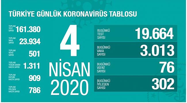 Sağlık Bakanı Fahrettin Koca: ''Bugüne kadar yapılan 161.380 testin %12,18’i son 24 saat içinde gerçekleşti. İyileşen hasta sayımızda önemli artış oldu. Dün toplam 484 olan iyileşen hasta sayımız bugün 786’ya ulaştı. Virüs gücünü temas ortamından alıyor. Virüse bu fırsatı tanımayalım.'' açıklamasında bulundu.