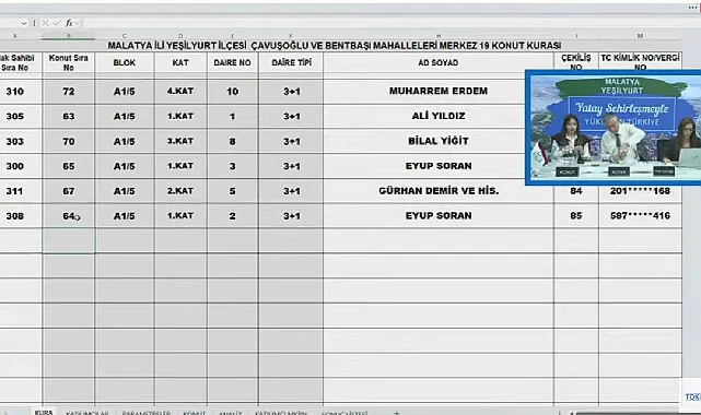TOKİ MALATYA YEŞİLYURT 19 KURA ÇEKİLİŞİ SONUÇLARI CANLI YAYINI