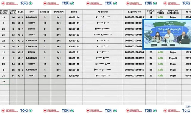Trabzon Şalpazarı TOKİ Konut Belirleme Kura Sonuçları İsim Listesi