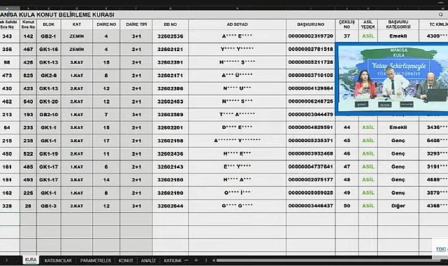 23 Haziran tarihinde yapılan TOKİ Manisa Kula kura sonuçları.