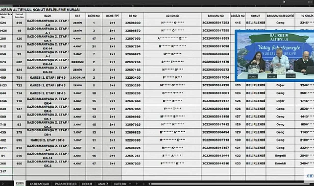 Buna göre 1435 başvuru sahibi Balıkesir Altıeylül TOKİ kurasına katılarak konutları belirlenmiş oldu. Balıkesir Altıeylül TOKİ kura sonuçları isim sorgulama ekranı TOKİ resmi web sitesi ve e-devlet üzerinden görüntülenebiliyor.