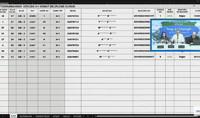 42 daireden oluşan 2+1 daireler için 32 başvurunun katılım gösterdiği kura işleminde, 48 adet 3+1 daire için ise 44 başvuru arasından konutlar belirlendi. Afyonkarahisar Gökçek TOKİ konut belirleme kura çekilişi sonuçları isim listesini YouTube kanalı canlı yayın videosundan izleyebilirsiniz.