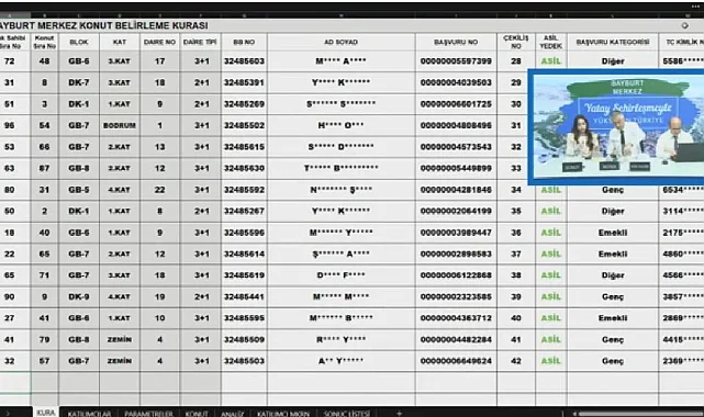 Bayburt Merkez TOKİ konut belirleme kura çekilişi sonuçları isim listesini YouTube kanalı canlı yayın videosundan izleyebilirsiniz.