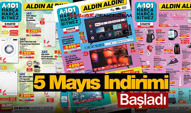 Bugün 5 Mayıs sabahı A101 marketlerinde bayram sonrası ilk aktüel ürünler kataloğu indirimli ürünleri satışa çıktı. 5 Mayıs Perşembe günü satışına başlanan A101 5 Mayıs indirimi aktüel ürünlerinde yok yok. Bulabilen hemen alıyor...