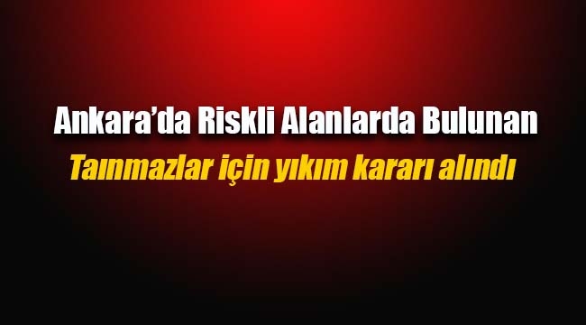 Ankara Büyükşehir Belediyesi tarafından Başkent'te yürütülen kentsel dönüşüm projesi kapsamında daha önceden riskli alan ilan edilen bazı yerlerin yıkılmasına ilişkin karar bu sabah Resmi Gazete'de yayımlanarak resmen yürürlüğe girdi.
