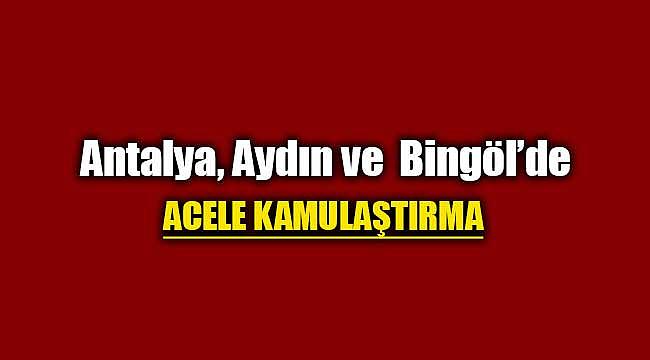 Kamu kurumları tarafından Türkiye genelinde yürütülen projeler için kamulaştırma yapılmasına devam ediliyor. Bu çerçevede üç ilde devam eden bazı HES ve yenileme projeleri için Antalya başta olmak üzere, Aydın ve Bingöl illerinde acele kamulaştırma yapılması kararlaştırıldı.