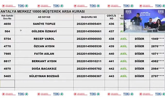 Antalya'da bugün çekilen kura sonuçlarını tek tek, isim isim canlı yayın videosu ile tekrardan izleyebilirsiniz.