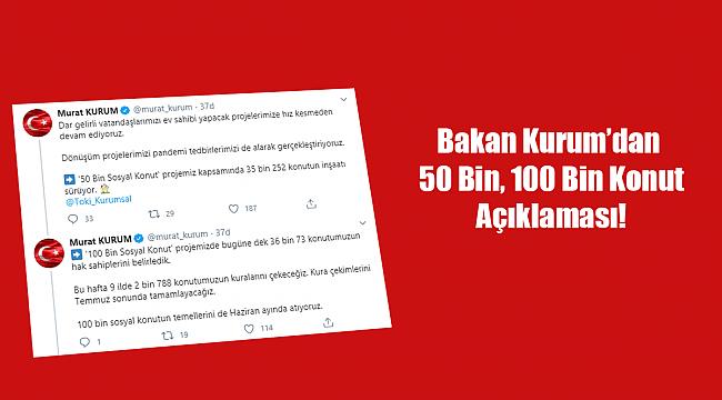 Dönüşüm projelerimizi pandemi tedbirlerimizi de alarak gerçekleştirildiğinin altını çizen Kurum, '50 Bin Sosyal Konut projemiz kapsamında 35 bin 252 konutun inşaatı sürüyor.' ifadelerini kullandı.