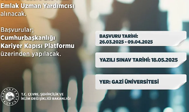 Çevre, Şehircilik ve İklim Değişikliği Bakanlığı, Ülke genelinde Milli Emlak bürolarında istihdam edilmek üzere uzman yardımcısı personeli alımı gerçekleştirecek.