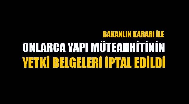 Çevre ve Şehircilik Bakanlığı Mesleki Hizmetler Genel Müdürlüğü, görev ve sorumluluklarını yerine getirmeyen yapı müteahhitlerinin yetki belgelerini iptal etmeye devam ediyor. Bu çerçevede Türkiye genelinde pek çok projede Kanuna aykırı olarak görev ve sorumluluklarını yerine getirmedikleri idarelerince tespit edilen çok sayıda Yapı Müteahhiti için yetki belgesi iptali kararı uygulandı.