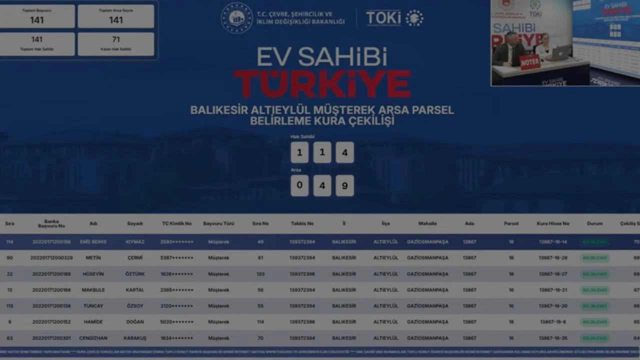TOKİ Balıkesir Altıeylül müstakil arsa parsel belirleme kurası çekiliş sonuçları ve hak sahipleri isim listesine dair detaylar.