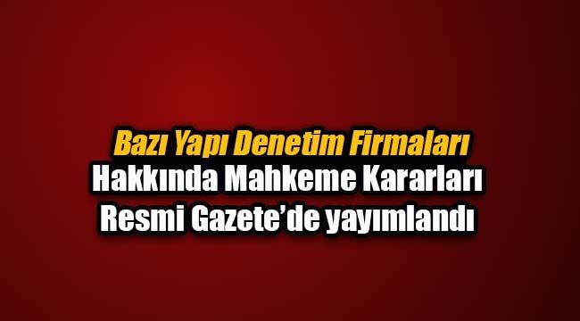 Bazı Yapı Denetim firmaları tarafından Bakanlık aleyhine açılan davalarda mahkeme tarafından dava konusu işlemin yürütülmesinin durdurulmasına karar verildi. Kararlara ilişkin detaylar bu sabah Resmi Gazete'de yayımlanarak resmen yürürlüğe girdi.
