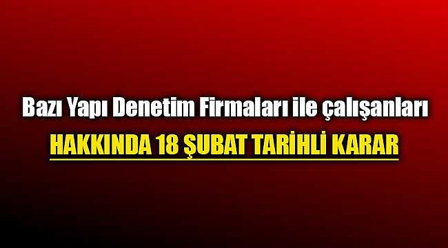 Bu kapsamda başta Ankara olmak üzere, Ordu, Şanlıurfa illerinde faaliyet gösteren bazı yapı denetim firmaları ve çalışan inşaat mühendisleri ile alakalı verilen kararlar Resmi Gazete'de yayımlanarak resmen yürülüğe girdi.