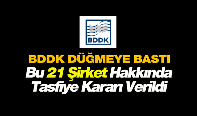 Bankacılık Düzenleme ve Denetleme Kurumu (BDDK) günün son dakika gelişmesini duyurdu. Tasarruf finansman faaliyeti yürüten ancak şartları sağlamayan 21 şirketin intibak taleplerinin reddine ve tasfiyelerine karar verdi.