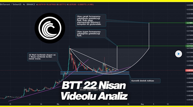 BitTorrent (BTT) çöküş sonrası sert çıkış bekleyenler için 24 Nisan video teknik analiz!