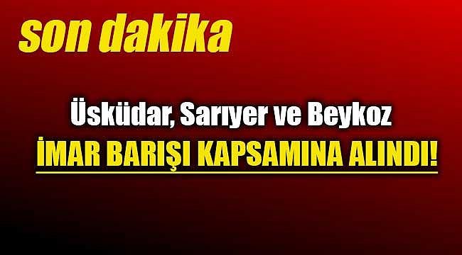 İstanbu Boğazı'nda ön görünüm olarak bilinen üç ilçesine imar affı geliyor. Sarıyer, Beykoz ve Üsküdar ilçelerini kapsayacak yeni imar barışı düzenlemesi Meclis'ten geçerek yasalaştı.