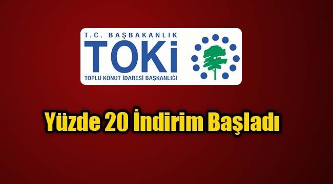 Başbakanlık Toplu Konut idaresi Başkanlığı (TOKİ) yurt genelinde her yıl uygulamaya koymuş olduğu yüzde 20 indirim kampanyasının startını verdi. Türkiye genelinde idareden taksitlerle ev alan vatandaşların bu yöntemle borçlarını erken kapatma fırsatı sunularak, yüzde 20 oranında bir indirimle evlerinden kar etmeleri sağlanıyor. İdare bu yöntemle ciddi bir gelir elde ediyor.
