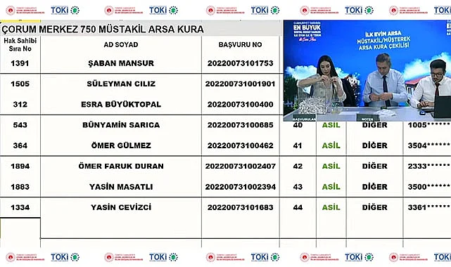 TOKİ tarafından ülke çapında hayata geçireceği İlk Evim Arsa kuralarına hızla devam ediliyor. Arsa sahipleri il il belirlenmeye devam ederken, bugün Çorum'da Noter huzurunda kura çekimi gerçekleştirildi.