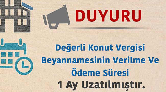 Emlak Vergisi Kanunu kapsamında, Değerli Konut Vergisi beyannamesi verilme ve ödeme süresi 1 ay uzatılmasına ilişkin Bakanlık tarafından açıklama geldi.