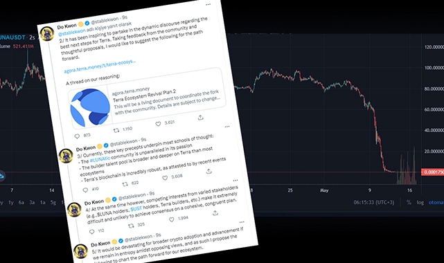 Do Kwon'un Twitter'da başlattığı “#TerraIsMoreThanUST” hashtag'i kısa sürede en çok paylaşılan ve etkileşime giren gönderilerden biri haline geldi. Kripto dünyasında süregelen düşüşlerin ardından en çok acıyı Terra Luna çekti.