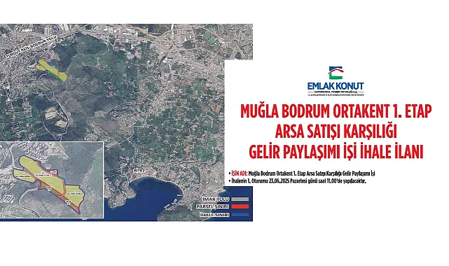 KAP açıklamasında, "Şirketimiz projelerinden Muğla Bodrum Ortakent 1. Etap Arsa Satışı Karşılığı Gelir Paylaşımı İşi ihalesinin 1. oturumu 23.06.2025 Pazartesi günü saat 11:00'de yapılacaktır..