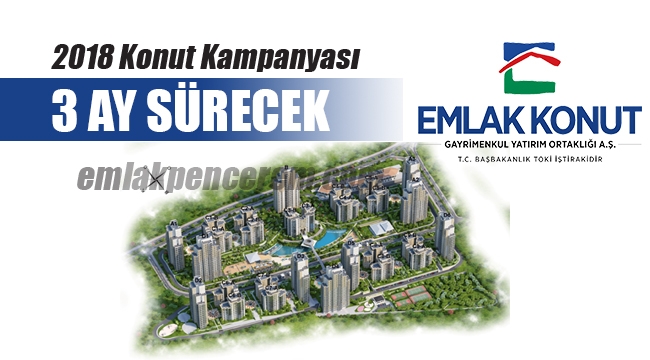 Ev sahibi olmak isteyen milyonlara müjdeli haber Emlak Konut GYO'dan geldi. Yeni kampanya başladı! Gayrimenkul sektörü 2018’i yeni bir kampanya ile karşılamaya hazırlanıyor. 1 Ocak-31 Mart arasında yapılacak kampanyayla % 10 peşin, 84 ay yüzde 0 faizle konut kredisi kullanılabilecek. Emlak Konut GYO ile 2018 satılık evler bu kampanya ile satışa çıkıyor.