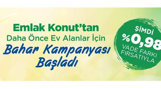 Emlak Konut kampanyası hızla devam ederken, ev alanlar için başlatılan kampanyada %0,98 den başlayan kredi faiz oranları ile borç kapama kampanyamızdan yararlanmak için anlaşmalı olunan Halk Bankası şubeleri üzerindne kredilendirilebilecekler. Kampanya 31 Mayıs tarihinde sona erecek.