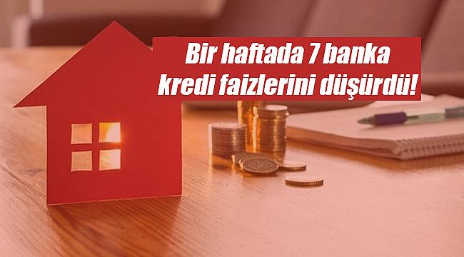 Kuveyt Türk Bankası, Türkiye Finans Bankası, İNG, İş Bankası, Garanti BBVA, HSBC ve Anadolubank faiz indirimi sonrasında son bir haftada konuta uyguladıkları kredi faiz oranlarını düşürdü. Bankaların konut için tabela kredi faiz oranları ortalaması böylece %1.28 oranlarına gerilemiş oldu.