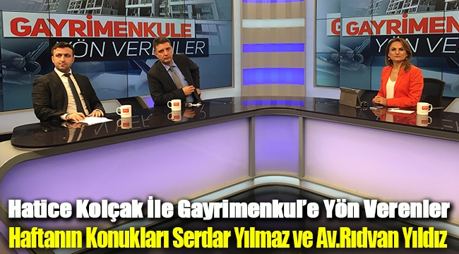 BENGÜTÜRK TV ekranlarında yayınlanan Hatice Kolçak ile Gayrimenkule Yön Verenler'in bu hafta ki canlı yayın konukları İnsay Yapı Genel Müdür Yardımcısı Serdar Yılmaz ve Avukat Rıdvan Yıldız oldu. Önemli konulara değinenilen Gayrimenkul'e Yön Verenler programında emlak sektörü ve yatırımlarda son durum konuşuldu.