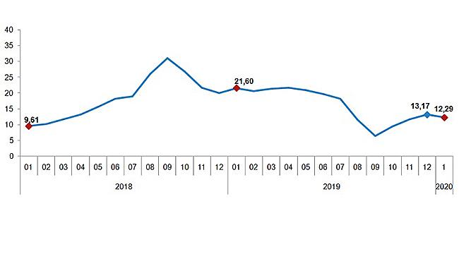 H-ÜFE (2017=100) 2020 yılı Ocak ayında bir önceki aya göre %2,90, bir önceki yılın Aralık ayına göre %2,90, bir önceki yılın aynı ayına göre %12,29 ve on iki aylık ortalamalara göre %15,26 artış gösterdi.