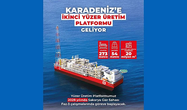 Yeni yüzer üretim platformumuzun inşa süreci tüm hızıyla devam ediyor. 2027 sonunda ülkemizde olacak ve 2028’de devreye girecek olan platform, Sakarya Gaz Sahası’ndaki üretimimizi günlük 40 milyon metreküpe yükseltecek.