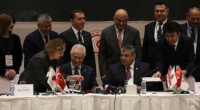 Irak’ta olumlu bir dönemin başlangıcının sinyallerini görmekten büyük mutluluk duyduklarını kaydeden TMB Başkanı Mithat Yenigün, “Önümüzdeki dönem devreye girecek olan barış ekonomisinin de gerek ülke gerek bölge kalkınması açısından önemli iş fırsatları yaratacağına inanıyoruz” dedi. Yenigün, “Türkiye Müteahhitler Birliği olarak, kardeş ülke Irak’a tarihi ve kültürel bağlarımızın yanı sıra önümüzdeki dönemin yakın işbirliği ortağı gözüyle bakıyoruz. İmzaladığımız mutabakat zaptının, sektörümüzde iki ülke arasındaki mevcut ortaklığa güçlü bir ivme kazandıracağına inanıyoruz” diye konuştu.