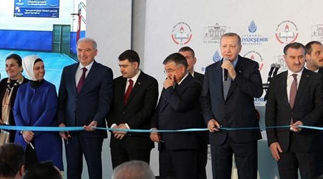 Törende konuşan Cumhurbaşkanı Recep Tayyip Erdoğan, bugün resmi açılışları yapılan 80 okuldan 25’inin Milli Eğitim Bakanlığı, 7’sinin İstanbul Büyükşehir Belediyesi, 48'inin ise İstanbul Valiliği öncülüğünde, kurumların ve vatandaşların bağışıyla yapıldığını, spor salonlarının tamamını ise İstanbul Büyükşehir Belediyesi'nin yaptığını belirterek, hayırlı olmasını diledi.