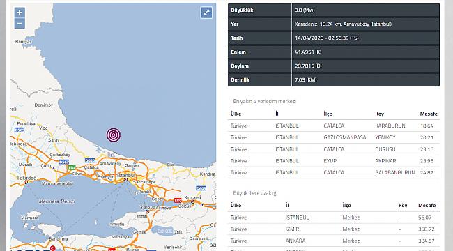 Afet ve Acil Durum Yönetimi Başkanlığı Deprem Dairesi Başkanlığı (AFAD) tarafından açıklanan sond eprem verilerine göre, saat 02:56 sıralarında merkez üssü Karadeniz açıkları İstanbul Arnavutköy'de 3.8 şiddetinde bir deprem kaydedildi.