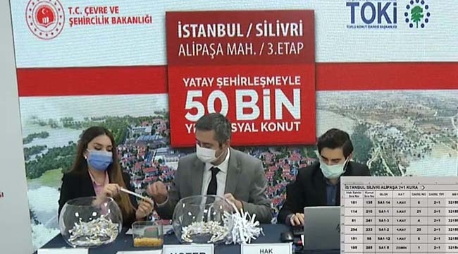 TOKİ 50 Bin sosyal konut programında İstanbul'da Silivri ilçesinde hayata geçireceği projesi için bugün online olarak kura çekilişi gerçekleştirdi. Kura sonuçları TOKİ'nin web sitesinde açıklanacak olan İstanbul Silivri konut inşaat süreci başlıyor. 22 Aralık sabahı bugün düzenlenen İstanbul Silivri TOKİ kura çekilişi ile hak sahipleri 50 bin konut kapsamında belirlenmiş oldu.
