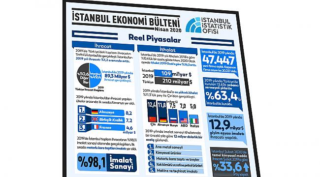 İstanbul'da 2019 yılında bir önceki yıla göre dış ticaret hacmi 14 milyar $ azalırken ihracatın ithalatı karşılama oranı %70,5'ten %81,4'e yükseldi. Türkiye'de ise 2019'da yıllık dış ticaret hacmi 17 milyar $ azalırken ihracatın ithalatı karşılama oranı %86'ya yükseldi. 2020 Şubat ayında ise İstanbul'da dış ticaret hacmi 369 milyon dolar azalarak 16 milyar 675 milyon dolar olarak gerçekleşti. İthalatın ihracatı karşılama oranı ise bir önceki aya göre artarak %75,7 olarak gerçekleşti.